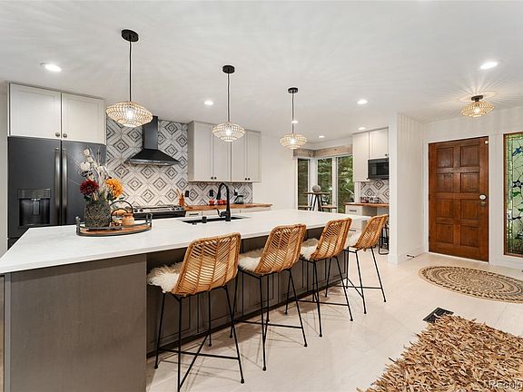Welcome to Briar Ridge, one of Littleton’s best-kept secrets! This fully remodeled home blends chic modern finishes with timeless comfort in a quiet, established neighborhood backing to a serene greenbelt. From the moment you step inside, the bright open floor plan, vaulted tongue-and-groove ceilings, and dramatic fireplace create a warm and inviting atmosphere perfect for gatherings. The gourmet kitchen is designed for both everyday living and entertaining, with a large quartz island and breakfast bar, butcher block counters, upgraded appliances, coffee bar, and eat-in space, all flowing seamlessly into the formal dining room. A private main-level office and convenient main-level laundry room add everyday functionality. Easy access to the attached 2-car garage makes daily life a breeze. Upstairs, the spacious primary suite serves as a true retreat with vaulted ceilings, a private balcony overlooking the greenbelt, a walk-in closet, and a luxurious five-piece bath. A second en-suite bedroom upstairs provides wonderful flexibility for guests or family. The finished basement expands the living space with a versatile bonus/flex room, currently used as a gym/playroom, two additional bedrooms, a full bath, and abundant storage. Step outside to find an entertainer’s paradise. The expansive back deck offers a private oasis for morning coffee, al fresco dining, or relaxing under the stars. Mature trees and a peaceful backdrop add to the home’s sense of tranquility. Extensive updates bring peace of mind, including a new roof, electrical panel, plumbing, HVAC, water heater, and sewer line (all in 2022). With thoughtful upgrades inside and out, plus easy access to trails, parks, top-rated schools, and vibrant Downtown Littleton, this Briar Ridge gem offers the perfect balance of style, function, and location!