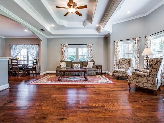 Beautiful custom home,nestled on a large very private lot,backs to greenbelt.All wood flooring except wet areas. Granite in Mstr and 2nd bath.Gourmet kit boasts,Granite counters,custom cabinets, pot filler above range,oversize flr tile.Snuggle up to the kit brkfst bar enjoy a meal.Quaint brkfst nook.Oversized Mstrbrm w double tray ceiling,mstrbth_double shower w rainhead and showerhead, 2X2 tile flr, tile shower walls, tile flrs to match,upgraded frameless glass shower door.Large mstr closet.Barrel ceiling in hall w ceiling lights nestled in crown molding for a soft uplight.Soft contemp wall scones in hallway.Generous size secondary bedrooms,split from master.Elegant and spacious LR with double tray ceiling.