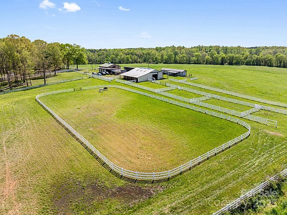Welcome to Rocky Top Farm! As you enter the 76.9 acre property through the grand gate & drive along the white fence-lined driveway, you’ll be greeted by expansive pastures surrounded by white fencing. This estate includes a brick, one-level home with a basement. The property encompasses multiple outbuildings designed to meet all your storage & equipment needs. The large red barn boasts roomy stalls, automatic waterers, & restroom. There’s ample space for your horses & equipment. Rocky Top offers endless possibilities for farming or recreational use. Spend your day fishing off the dock on the stocked pond or enjoy the peaceful swing by the water’s edge. The surrounding woods provide tranquility. The property includes a mobile home, providing additional housing for guests or staff. This farm is the ideal setting. Situated in a prime location just minutes from Interstate 485, this property offers easy access to all that Charlotte has to offer. A perfect balance of privacy & convenience.