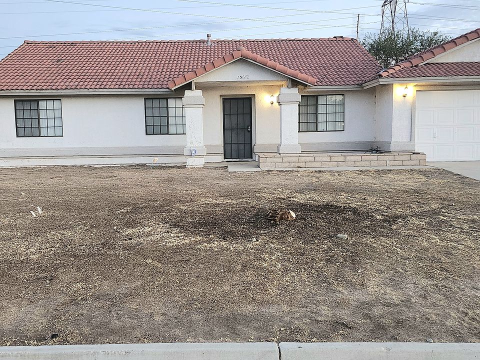 New counter top with sink in hallway bathroom. This bathroom has a bathtub shower combo. All bedrooms are wood laminate. The master bathroom has a walk in closet. It also has a walk in shower with toilet. No bathtub. The master bedroom has a sliding glass door to patio area. Covered patio is the length of the back of the home. Close to Summit Valley Rd that leads to California State Route 138 to the I-15. Ranchero Rd E to Apple Valley or W to the I-15.