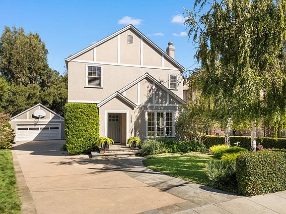 Beautifully updated Tudor on one of the most coveted streets in Easton Addition, set on a generously sized lot with the natural backdrop of a seasonal creek for privacy and serene views. Fine hardwood floors, refined millwork, updated lighting, and plantation window shutters enhance timeless character. The formal living room has a gas and wood fireplace with cast stone surround and a wide arched opening to the formal dining room crowned by a contemporary chandelier. The remodeled kitchen features wood-grain cabinetry, granite counters, glass tile backsplashes, a built-in workstation, center island with seating, and premium appliances. 4 bedrooms and 3.5 baths include an upstairs primary suite, a second suite ideal for guests, and two bedrooms served by a hallway bath. There is a formal powder room, large main-level laundry room, partial basement, upper-level air conditioning, and detached 2-car garage. The tranquil yard has synthetic lawn, a paver stone patio, and elevated deck. This exceptional home is served by excellent Burlingame schools, with Lincoln Elementary just blocks away, and is close to Mills Canyon Park, trails, plus shopping on Broadway.