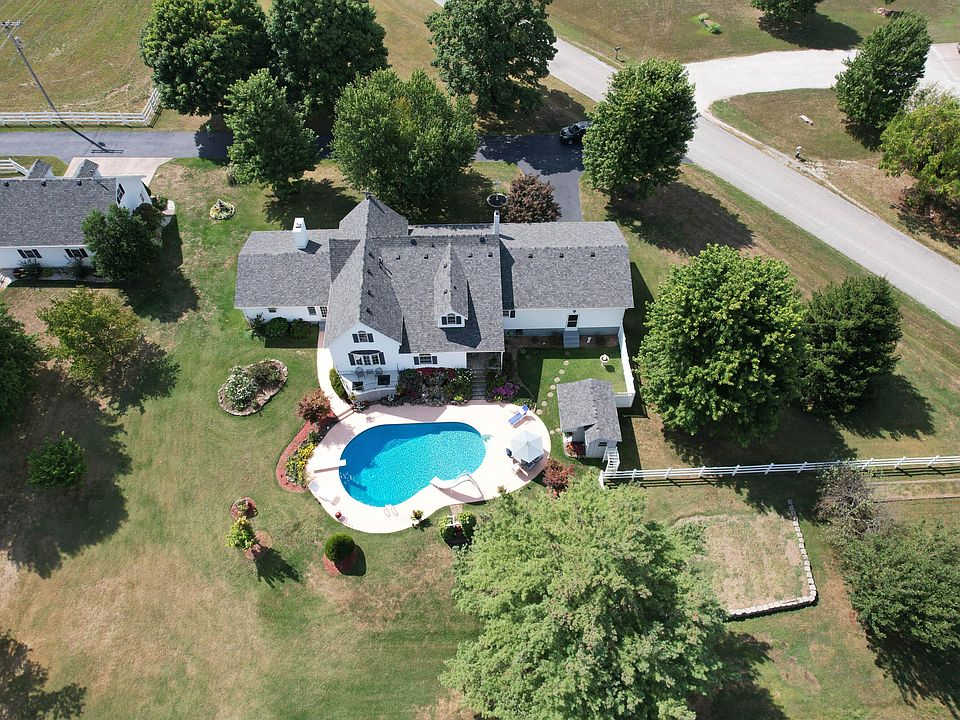 Remarkable home located on 12.04+/- acres with two entrances, one with direct access and Highway 160 frontage! This meticulously well maintained home features a split three bedroom floorplan with two living areas and three baths. From the front porch, you're greeted with one of the two living areas adjacent to spacious kitchen with separate dining area complete with custom glass front cabinets, quartz countertops, tile flooring & breakfast bar leading to the laundry area and back porch overlooking the custom waterfall fountain, the heated in-ground pool with diving board and slide, pool house with its own half bath & bar, perfect for summertime entertaining!! Back inside the main level of the home is the 2 car oversized attached garage with pellet stove, painted floors, work area, plentiful storage and access to the partial basement & storm shelter. Moving back inside to the living area of the home, you will find the second pellet insert fireplace, built-in cabinetry accented with crown molding, floor to ceiling windows leading into the enclosed sunroom adjacent to the second living area with plentiful cabinetry and open closet which could be used as a bedroom or office. The separate Master bedroom suite is complete with a large walk-in bath, with oversized walk-in shower, dual vanities & jetted tub. Moving upstairs, the home is finished out with the remaining two bedrooms, a full bath and office area. The acreage also features a large pond, tool shed with garage door & electric along with a detached garage building featuring a loft area which could be converted into additional living space. Property could be split into additional building sites with city water line located along Glossip or a Commercial build with Highway 160 frontage, the possibilities are endless!! Don't miss this one!!