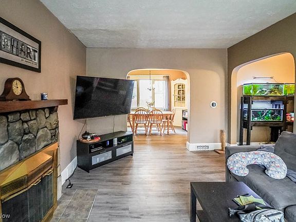 Experience the timeless charm of this brick colonial in Goodyear Heights! The covered front porch invites you to step inside through a decorative glass door into a welcoming foyer. Archways add character and a great flow from the cozy living room, where a gas fireplace sets the scene, to the dining room featuring twin corner cabinets and a large picture window. The kitchen combines modern style with white cabinetry, some with glass fronts, a tile backsplash, and easy access to the covered back porch and fully fenced backyard—perfect for outdoor fun. A flexible family room addition, complete with a private entrance, makes an ideal spot for relaxing or setting up a home office. There’s even a handy half bath on the main level. Upstairs, all three spacious bedrooms feature hardwood floors and share access to an updated full bath, including the primary, which has a walk-in closet. The full basement offers plenty of storage space and laundry hookups, while the detached two car garage with electricity adds the perfect finishing touch to this home. Schedule your showing today