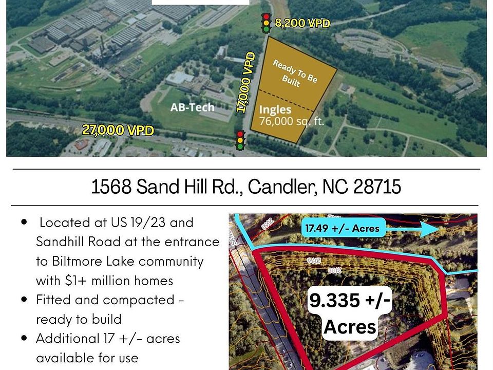 Excellent development opportunity in the growing Candler/West Asheville corridor! This 26± acre property offers outstanding potential for commercial, mixed-use, or residential development. Ideally located less than ten miles from Downtown Asheville, the site benefits from strong visibility, convenient access, and proximity to one of the region’s most active growth areas.