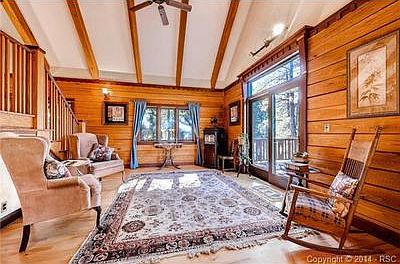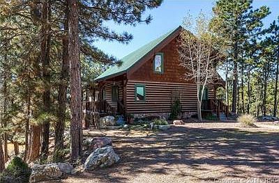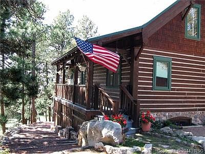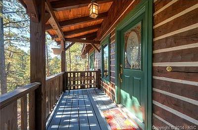 Handcrafted from top to bottom! This gorgeous two story log style home is perfectly situated on almost five acres that is zoned for horses w/ breathtaking mountain views. Welcomed by a picturesque tongue and groove covered front porch that opens to a cabin like interior w/ red oak hardwood floors that flow through the most of the house. Trim and moldings are from purple heart- a tropical hardwood and the pegs are hand fitted ebony. Formal living room with vaulted beamed ceilings, formal dining room with tongue and groove ceiling that extends through the kitchen w/ cherry cabinets, breakfast nook and opens to the deck. Main level bedroom and full bath. Upstairs is the vaulted master bedroom with walk-in closet and gorgeous master spa featuring a free standing glass block shower and soaking tub and vaulted ceiling. An additional spacious bedroom, office and beautifully detailed bath complete the upper level. Unique features include: fire sprinkler system with each heat censored head is independent of the other, doors are custom made with purple heart hardwood panels and red oak, logs on home are 8" thick squared red oak and interior of logs planed smooth. Well permitted for household use and domestic animals. Spectacular craftsmanship and attention to detail while recreating the classic 1920's "Craftsman" style with all the charm of a Colorado cabin life. A must see!