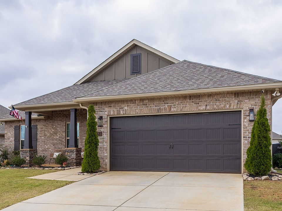 The RODESSA III B in Tunlaw Ridge community offers a 4 BR, 2BA open design. Special Features: double vanity, garden tub, separate shower, and walk-in closet in master bath, walk-in closets in bedrooms 2 an 3, double vanity in 2nd bath, kitchen island, walk-in pantry, covered front porch, covered rear patio, undermount sinks, pulldown faucet and custom backsplash in kitchen, recessed and pendant lights, bronze plumbing fixtures, landscaping with stone edging, gutters, stone address blocks, flood lights, and more!Energy Efficient Features: a kitchen appliance package, vinyl low E-3 tilt-in windows, and more! Upgrades added: Fence and enclosed back patio.