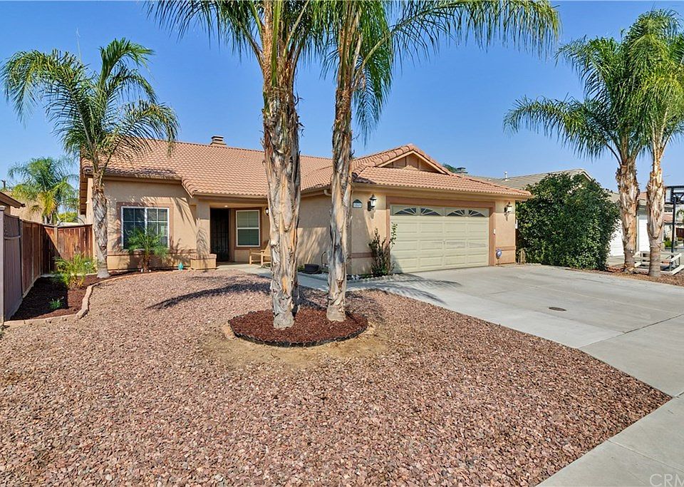 This lovely single-story home with Eco-friendly landscaping and SOLAR PAID features 4 bedrooms, 2 bathrooms, and a nice open floor-plan with neutral colors and natural light. Upon entry you have the Living Room currently being used as a billiards room (Pool Table included!!!). Then we have the fireplace-warmed Family Room adjacent to the Kitchen with an island and stainless appliances including the refrigerator! Easy access to the backyard with an Alumawood patio cover for indoor/outdoor living and entertaining. Inside, the 4 bedrooms provide space for relevant family needs like a home office or virtual learning space. The spacious primary bedroom has a walk-in closet and en suite. The laundry room leads to the 2 car oversized garage providing ample storage space. This home is located convenient to Schools, Shopping, and there is no Community HOA. It also has 20 year Leased Sunrun Solar from 2010. 20 Years paid upfront has 10 years left with warranty and lease payment free!!! Included: Refrigerator, Garage Washer & Dryer, Pool Table, Nest Thermostat & 2 Storage Sheds Porch Swing & Canvas Pop-Up are Excluded
