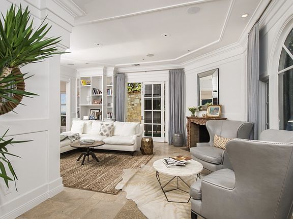 Property is a turn-key knockout!! Light, bright, exquisite, easy to maintain, sophisticated home with incredible mountain, city and ocean views. Dramatic entry with soaring ceilings. Antique marble mantels, floors of limestone, wide plank wood floors throughout. Huge living room, formal dining room and breakfast area/w beveled glass French doors which open to the travertine wrap-around-deck and swimmers pool. Three master-size bedrooms plus 3 full baths and a half bath, built in office in one of the lower floor bedrooms. Available furnished. C'est magnifique!