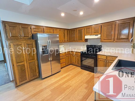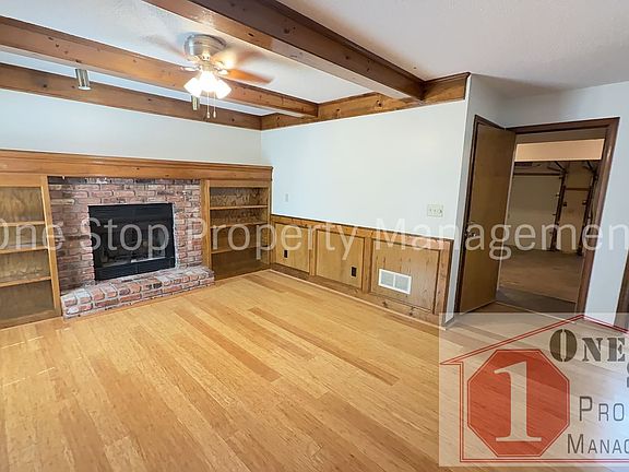 Discover this beautiful 4-bedroom, 2.5-bathroom home in Olathe, offering the perfect blend of space, comfort, and style. The main level features a bright open floor plan with a versatile formal dining room or office, a spacious kitchen with vaulted ceilings, and a large eat-in area that flows seamlessly into the living room. The living room includes custom built-ins with a dedicated space for your TV, creating a perfect spot to gather and relax.