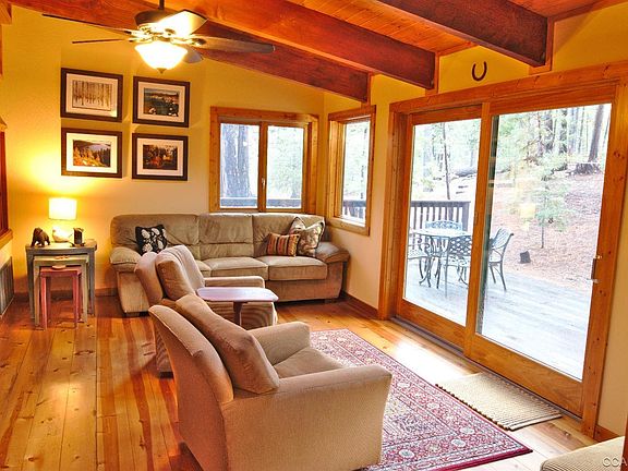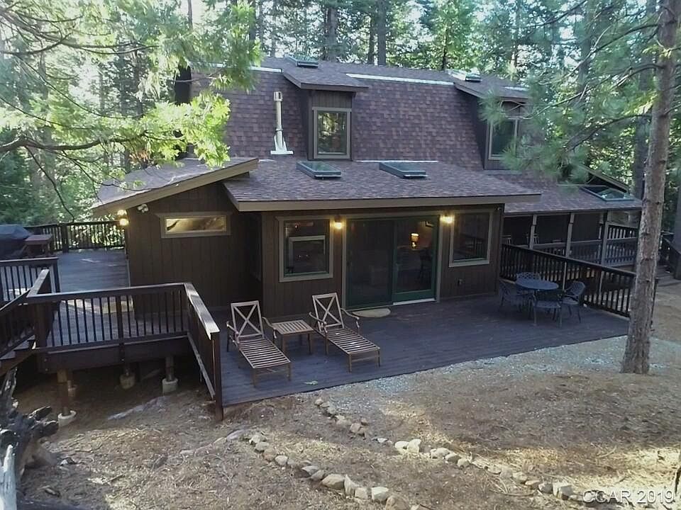 Million Dollar Private Location, backs up to Calaveras Big Trees State Park, approximately 1 acre park setting. Most furnishings included. Knotty Pine. Huge Master on main level, large walk in closet and large attached bathroom with light and bright skylight. Upstairs has 2 bedrooms that are currently open as a huge loft with tall vaulted ceilings. Inside Laundry Room. Sit on wraparound deck and gaze into the state park. Room to park several cars and turnaround area. Huge sub area for storage