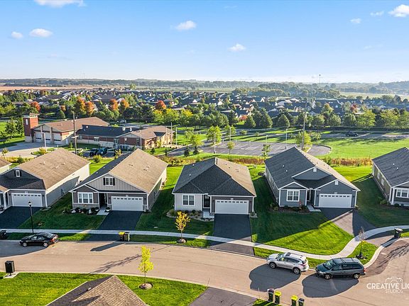 DON'T MISS YOUR CHANCE!!! THIS IS ONE OF THE LAST OPPORTUNITIES TO OWN A NEW BUILD IN CARILLON! The Carillon at Cambridge Lakes Active Adult Community in Pingree Grove has every amenity imaginable including a clubhouse, pools, a library, and tons of activities for residents including social gatherings, bocce, tennis, golf, and more! This sought-after Chatham model has every upgrade imaginable, and is 100% move-in ready... better than new construction! Rich Luxury Vinyl Plank flooring throughout the ENTIRE home, including all bedrooms and closets! Open-concept floor plan with added canned lights and tons of natural sunlight from the large windows in every room. Window treatments are already in place throughout! Spacious living room adjoins the dining area and kitchen ~ ideal layout for entertaining. Sliding door leads to the covered patio, which has been EXPANDED to add more outdoor relaxing space! The modern kitchen boasts 42" white designer cabinetry with crown molding and above-cabinet LED lighting, quartz countertops, stainless steel appliances including a side-by-side Whirlpool fridge, a walk-in closet pantry, and a huge center island with a sunken sink and breakfast bar seating. The spacious master bedroom suite features a luxurious private master bath with upgraded quartz countertop double sink vanity, a tiled step-in shower with frameless glass door and seating, a private water closet, and a linen closet. Huge walk-in master closet! The 2nd, 3rd, and 4th bedrooms are all generously sized with large closets, and share access to the full hall bath which also has quartz countertops and includes a shower and bathtub. The first-floor utility/laundry room also has the vinyl plank flooring, and features Maytag washer and dryer. No basement... true one-level living! The attached two-car garage has been painted inside. Relax in the private backyard with no neighbors behind! Enjoy low-maintenance living ~ the association handles all lawn care and snow removal! You'll never be bored with access to all of the community amenities, including indoor/outdoor pools, a jacuzzi, tennis & bocce courts, a golf course, a fitness center, walking trails, and a 30,000 sqft clubhouse with hobby & crafting rooms, a library, a billiards room, a computer lab, and a ballroom which hosts tons of social activities for residents! The association also allows rentals, so this could make a great investment property! Don't miss this opportunity... WELCOME HOME!!!
