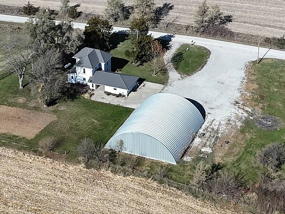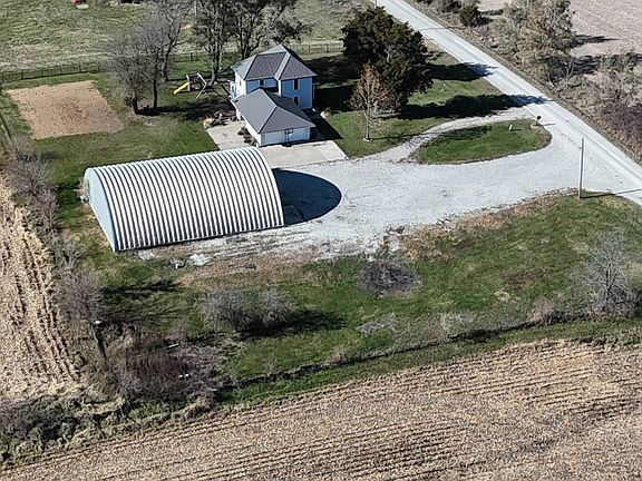 Here is your chance to have that place in the country. A 2 story farmhouse with 4 bedrooms, 2 bathrooms sitting on 1.47 acres. There is much to love about this one starting with the very quiet location with awesome shade trees, lots of concrete, landscaping and literally tons of rock in the gigantic driveway. A very nice Quonset hut that measures 60x72 with a 24x16 automatic door, some LED lights, an approximately 10x20 concrete work area with electrical outlets on the wall. This a clean, well built building that was put up in 2014. The rest of the floor is rock/dirt. A huge concrete area from the building to the house that wraps around with a sidewalk to the front door and the breezeway that attaches the garage to the house. It also wraps around the back to the open wood deck with some great views of the yard and the farms in the distance. The garage has some work benches, 1 automatic garage door, a manual door and there are 2 spots for vehicles. Back into the breezeway you can go to the basement where the electric hot water heater is located, the forced hot air propane furnace that was new in 2015, central air, new pex and pvc lines and a newer 200 amp electric panel. The walls have been spray foamed and it is a mix of block and stone. It has been a dry basement for the sellers. The septic was new in 2020 and has been recently pumped and inspected and passed so no need to worry about that. Aluminum siding all the way around and a metal roof was put on in 2021 along with new gutters. The breezeway entrance has a mudroom area that leads to the very gracious sized eat-in-kitchen with lots of cabinets, laminate countertops, oven/stove, microwave, refrigerator and plenty of room to move around. New vinyl flooring was installed in the kitchen, laundry room and the downstairs bathroom back in 2018. The laundry room/pantry area is off the kitchen with a closet, where you will find the negotiable speed queen washer and dryer(electric). The living room has some great views with the custom vinyl windows(throughout the house) an electric fireplace that can be used for additional heat or just some ambiance. There is another large room with a closet that could be a bedroom if needed or an additional family room. There is a full bathroom on the main level and can be accessed from the kitchen or the family/bedroom. Upstairs you have 3 more nice sized bedrooms, 2 with wood floors and 1 with carpet, great views, ceiling fans and a landing area at the top of the steps. A hard to come by 3/4 bathroom was added to the 2nd floor that features a shower with a 1/2 sliding circular door, vanity, stool and an additional urinal. The house feels spaced out well with 1602 sq ft between upstairs and downstairs. This is a great home sitting on 1.47 acres on a quiet gravel road and a very nice building. The property is located in Mormon Trail school district. This would be a great one to grab ahold of with motivated sellers. Make your viewing appointment today !