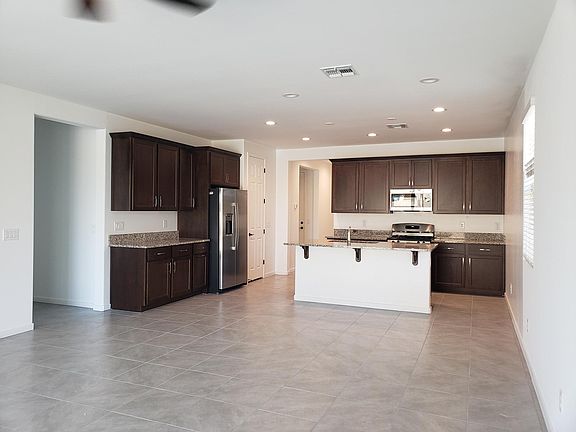 state of the art AQUATIC/RECREATION CENTER loaded with ACTIVITIES FOR ALL AGES DIRECTLY ACROSS STREET! WORLD CLASS GOODYEAR BASIS AND DESERT EDGE HIGH SCHOOLS WALKING DISTANCE!! Community also has large greenbelt and kids play equipment. INSIDE FEATURES large kitchen island open to expansive Great Rm anchored by STUNNING ARCADIA GLASS SLIDERS. Master en suite has double sinks, huge walk-in closet and spacious shower. AND MORE! Home loaded w/upgrades including, tile flooring in the traffic areas, granite counters, stainless appliances, high ceilings, chrome fixtures, 2" white binds AND ceiling fans throughout. PLUS! - about a mile 1 mile from 10 fwy Loop! and 15-20 min from downtown Phoenix/ Sky Harbor Airport ! REFRIGERATOR WASHER, DRYER INCLUDED!