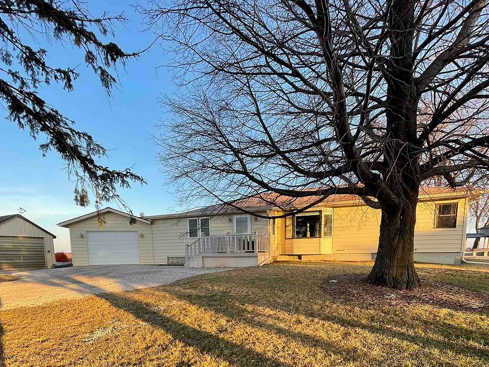 The perfect acreage in the perfect location! Located right on the black top. This acreage provides 5.75 acres, a beautiful 2 bedroom (with potential for added bedrooms down stairs) 2 bath home, a one stall attached garage, as well as a single non attached garage, another 2 stall non attached garage, a large Machine shed, and a beautifully built Gazebo with a built in Log liter fire pit, with propane ran underground! As well as another out building! 6 inch gutters, gutter covers, New roof including sheeting, new furnace and AC unit, complete remodel of the smaller bathroom, triple pane picture windows installed in the living and dining room with built in blinds, and reverse osmosis system, as well as all new pex throughout the house have all been done since 2020. Also new septic was installed and finished July of 2024. This is a MUST SEE, to truly appreciate all it has to offer! Give myself or your agent a call today to schedule a showing!