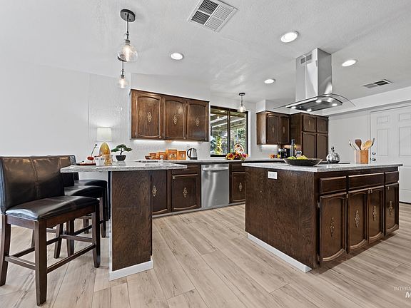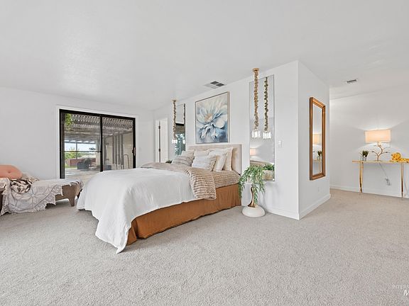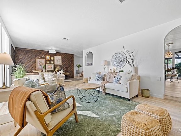 OPEN HOUSE Sunday 11/16 at 1-4pm. Must See! 2.12-acres w/private pool, sports court, basketball/tennis/pickleball, horse/livestock pasture, hobby farm with fenced backyard +++. BEAUTIFUL & SPACIOUS! Modern Amenities & Classic 70’s Charm, w/No HOA! Delightful surprises around every corner in this custom ranch entertainment home with fully finished basement. Four large bedrooms on the main level, including a luxurious primary suite. Brand new plush carpet in all bedrooms! Head down the groovy spiral staircase to the inviting entertainment area for a stylish setting to host friends & family. Three potential bedrooms downstairs, with a built-in dry sauna, XL utility room, full bath, spacious office, wet bar, game rm, 3rd fireplace, & garage-access cold storage room. **2** laundry hookups—one on each level, for added convenience, plus laundry chute! Step outside to your own private oasis, with a private in-ground pool shimmering under the sun, & hot tub to melt away stress, while the deck, patio, & enormous recreation court create versatile spaces for outdoor relaxation & fun! Bring your animals to the pasture areas w/views of the Boise Mountains & neighboring farmland. RV parking and circle-drive. Lovely mature trees & landscaping. Backyard fully fenced. Roof is only about 6 years old! Some furniture negotiable.
