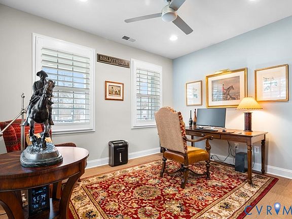Better than new!! This amazing 1st level primary bedroom home is in the highly sought after Mosaic at West Creek Community. This home is an upgraded Southport Model, built in 2023, and features 10' ceiling on the main level and has 4 bedrooms, 2.1 baths, 1st level office, 1st level primary bedroom with bath, large 2-story Living Room with stone fireplace, a 2-story Sunroom; and a Gourmet Kitchen with Quartz countertops, floor-to-ceiling cabinets, GE Monogram 36" gas cooktop with vented hood, GE Monogram 48” Built-In Counter Depth Refrigerator and more. The entire first level features upgraded engineered wood floors, custom moldings, and beautiful plantation shutters. The second level features an open loft, three bedrooms, and a large bonus room perfect for storage. Other upgraded features include a front balcony, oversized garage, and a screened porch that was just built this year. The yard is fully sodded and irrigated, and the rear yard is fenced in. The Clubhouse at the Connection is just across the street so there is easy access to the state-of-the art clubhouse which features a pool, exercise room, pickleball and Bocce Ball, and more. Mosaic at West Creek is an age-qualified community which offers maintenance-free living and is just minutes to Short Pump and Interstates.