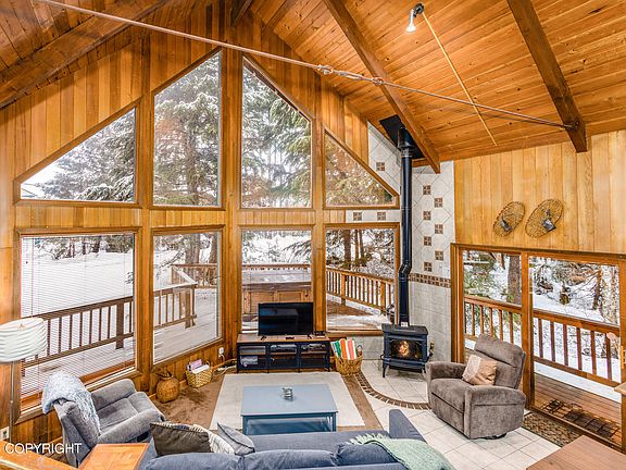 Affectionately known as the ''Kelly Cabin''. Many a memory made in this successful nightly rental. Tongue and groove ceilings, natural light, open floor plan, gas fireplace, sauna, & large deck w hot tub. Soak in the tub after a day of skiing with peekaboo views of Mt. Alyeska. Backs onto Park Reserve. Sold turn key furnished. Many Seller improvements including new metal roof, and deck repairs.