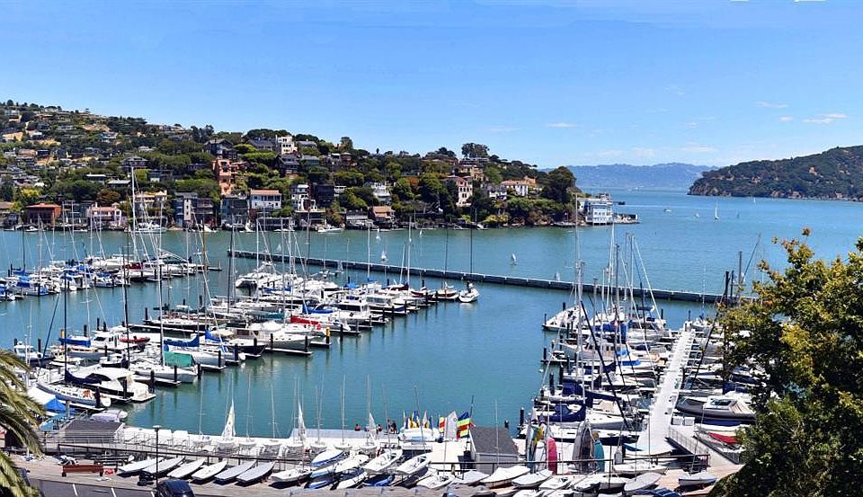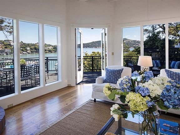 Vintage charm and detail with modern elegance. A large living room is warmed by a fireplace and brightened by expansive glass doors that open to a deck with stunning Tiburon and SF Bay views. Large master suite with attached office/sitting area and views of the Bay. Spacious yard with lush landscaping and a hot tub. The home's convenient location adds a finishing touch, only minutes to town, yacht club and ferries. Hillavator access.