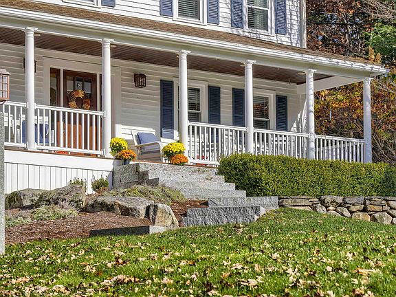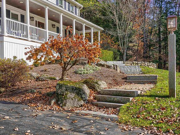 Pristine Bedford Colonial Situated on +/- 1.5 Acres, Distinctively Perched on Country Road with a Farmers Porch Perfect for Afternoon Day Dream Relaxing in a Rocking Chair. This home has been meticulously cared for with many updates. The well Appointed Kitchen offers Quartz Counters, Subway Tile Back Splash and High End Appliances. French Door leading to New Expansive Composite Deck Overlooking Large Level Yard. Freshly Painted Inside and Out. Primary Bedroom offers walk-in closet and an on-suite. Lower Level is Finished Making it a Great Hang Out Space or Home Office. All 4 Bedrooms Boast New Carpets, New Electric Panel Ready for a Generator. Central A/C second Floor and Mini Splits on the first, Irrigation System, Wood Fireplace just in time for Cool New England Nights. Young Roof, Heating System and Windows the only thing left to do is Unpack!