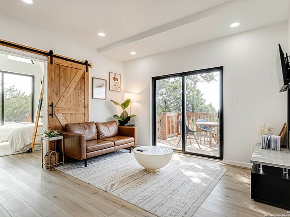 Escape to peace and quiet in this cozy 1 bed, 1 bath A-frame home tucked away near the scenic Medina Lake. This unique retreat features an open layout with tons of natural light, a beautifully tiled walk-in shower, and a ladder-access loft - ideal for extra sleeping space or storage. Step outside onto the wood deck and take in the tranquility or soak your cares away in the private hot tub under the stars. Whether you're sipping morning coffee surrounded by nature or enjoying evenings on the deck this home invites relaxation. Located just minutes from downtown Bandera, the "Cowboy Capital of the World," you'll have easy access to local dining, shops, and outdoor adventures. Perfect as a weekend getaway or a short-term rental, this charming home blends rustic charm with modern comforts. Don't miss your chance to own this Texas Hill Country gem!