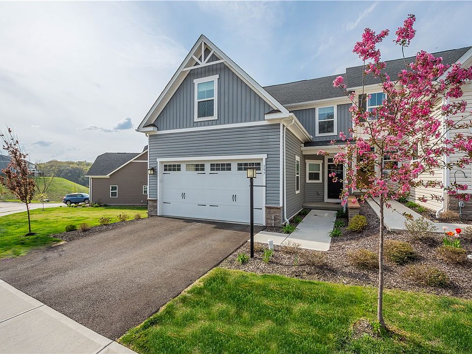 Desirable 2 Yr. Young End Unit & Best Location in the Plan w/ Greenspace at the Left Side/Rear & Views of the Woods in the Back. Minutes to Shopping/Restaurants and 20 Min. to Downtown PGH & the PGH Airport. Ideal Low Maintenance Living! The Resident Chef Will Love the Kitchen w/White Shaker Cabinetry, Quartz Counter Tops, Custom Tile Backsplash & all GE Stainless Appliances Including a 5-Burner Gas Stove w/Griddle. Open Floorplan is Ideal for Today's Lifestyle! Luxury Vinyl Flooring Throughout the Main Living Spaces. The Main Level Primary Suite Features a Trey Ceiling & Lux Bath with a Quartz Topped Double Bowl Vanity, Neutral Tile Flooring, Spacious Walk-In Shower w/Custom Tile Surround & Walk-In Closet. The Second Level is Home to Two Guest BR's & a Full Bath Including a Quartz Topped Vanity. Finished Lower Level w/Walk-Out is Ideal for Relaxation or Gaming. Don't Miss the Lower-Level Private Patio for Additional Outdoor Space & Attached Two-Car Garage. Hurry, Won't Last!