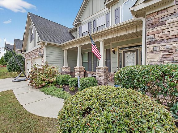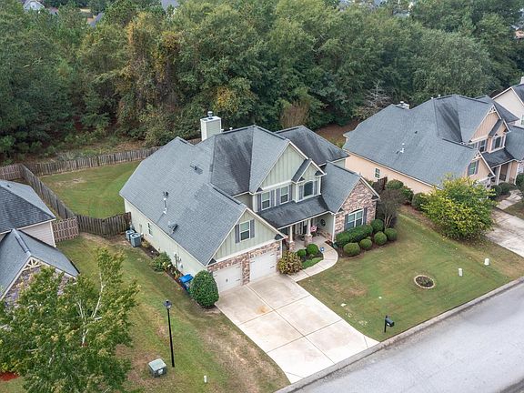 Welcome to The Ridge at Chukker Creek! This beautifully cared-for two-story home offers 3,826 square feet of living space, 5 spacious bedrooms, and 3.5 baths. From the inviting rocking chair front porch to the thoughtful interior finishes, it's clear this home has been meticulously maintained and is move-in ready. Step inside to find a formal dining room with gorgeous trim details and a coffered ceiling, perfect for special gatherings. The kitchen is both stylish and functional, with granite countertops, a tile backsplash, stainless appliances (including a gas cooktop, double ovens, refrigerator, and dishwasher), bright cabinets plus a pantry for storage. A breakfast nook offers a casual spot for everyday meals and opens to the covered back porch with peaceful views of the green space—an ideal place to relax and take in the sunset. The great room ties it all together with a vaulted ceiling, cozy fireplace accented with custom stonework, and an open flow for easy entertaining. Engineered hardwood floors throughout the main living areas add warmth and durability, while new carpet in the primary suite provides comfort where it counts. The main-level primary suite also includes a tray ceiling, large walk-in closet, and a spacious bath with double vanity, walk-in shower, and soaking tub. Upstairs you'll find four additional bedrooms and plenty of room for family, guests, or a home office. A roomy laundry area, blinds throughout, and excellent storage make everyday living simple. The attached two-car garage adds convenience, and both the refrigerator and living room TV mount convey with the sale. Outside, the neighborhood offers some amazing amenities: a clubhouse with full kitchen for events, pool and gym, scenic walking trails around the community pond, and even an equine riding easement. It's a true lifestyle community where neighbors connect and families thrive. There may be several homes available in The Ridge right now, but this one truly stands out thanks to the pride of ownership and care the sellers have put into every detail. Conveniently located near Aiken's southside shopping and dining, with easy commutes to SRS, the Meta AI Datacenter, Fort Gordon, and some of the area's top golf courses, this home checks every box.