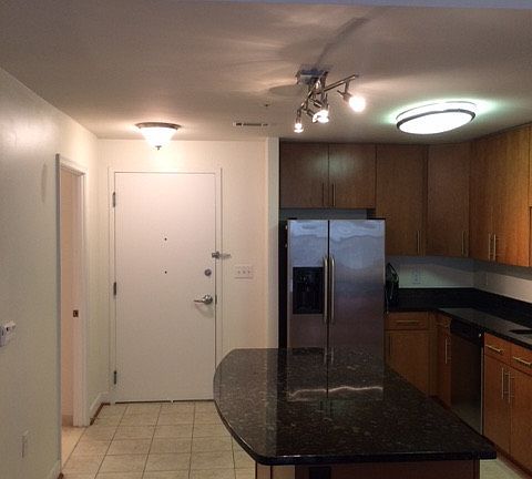 Beautiful 1 br/ 1 bath Condo with wood floors throughout the open concept kitchen and Living room. Granite counters with all stainless appliances. Master Walk in Closet. Building has indoor access to gym and to private parking garage with one space. Stack washer and dryer in unit. Nice size balcony. Walk to shopping and dining close by. Take a water taxi to Alexandria Virginia. Commuting distance to Virginia and D.C.