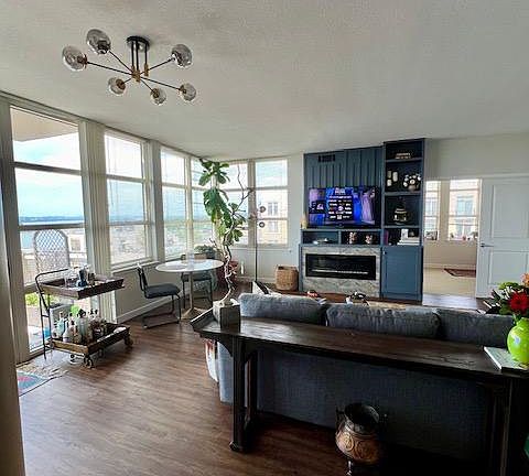 Rare opportunity! Experience this exquisite 1-bedroom, 1-bathroom corner condominium with a den and premium parking space; boasting breathtaking river views that create a picturesque backdrop from your two private balconies. This tranquil oasis invites you to indulge in the beauty of planes gracefully landing in the distance, vibrant fireworks illuminating the sky, and the serene songs of birds, not to mention the Christmas Tree in December. The bathroom has been tastefully updated in 2022, a closet system to enhance the bedroom and den with built-in storage, providing ample storage without compromising style. The elegantly designed kitchen features recessed lighting that casts a warm glow over granite countertops and stainless steel appliances, perfect for culinary endeavors. Luxury Vinyl Plank flooring adorns the living room providing aesthetic appeal and durability. The living room's electric fireplace enhances the mood. .Situated in the heart of National Harbor, you have access to an array of fine dining restaurants, luxurious hotels, and exciting events, including the world-renowned MGM resort. For those connected to military service, esteemed installations such as Bolling AFB, Andrews AFB, Navy Yard, and the Pentagon are conveniently close. This property represents the epitome of luxurious living, where every detail has been thoughtfully curated for your enjoyment.