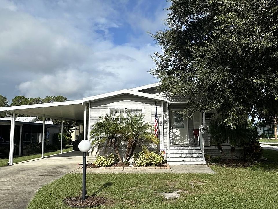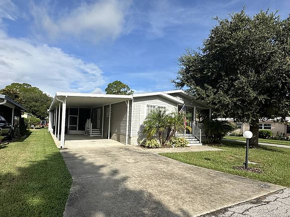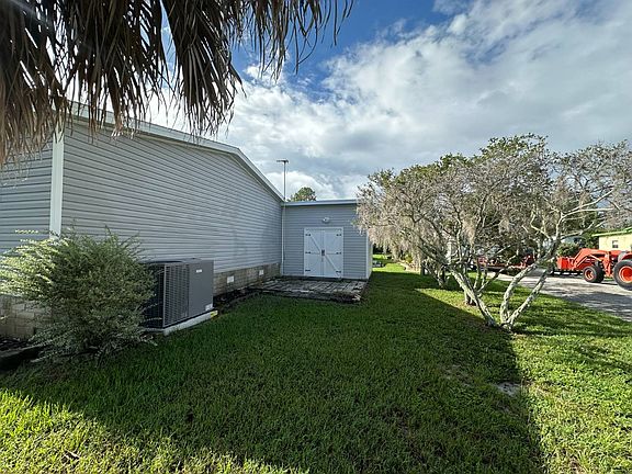 Cross over the bridge and enter into Paradise. This 55+ community sits right on Lake Eustis and offers a clubhouse, heated pool, jacuzzi, boat launch,fishing pier and many activities. This fully furnished 2009 Scotbilt 3 bedroom 2 bath home is the perfect Florida home for you. 1300 square feet of living area. Cute covered front porch to sit and enjoy the Florida sunshine. Large galley style kitchen with breakfast area. Inside laundry room. Large master bedroom with master bath that includes a walk in shower, double vanity and large linen closet. Nice size guest rooms. New Shingle roof 2025. tape and textured walls. New central air unit 2024. Huge workshop with double doors to accommodate your golf cart or motorcycle. Extra long driveway. Large screen room on side of home for added privacy that leads to your workshop.Monthly fee is only $493 and includes trash and lawn mowing. Don't miss out on this home. SC2253