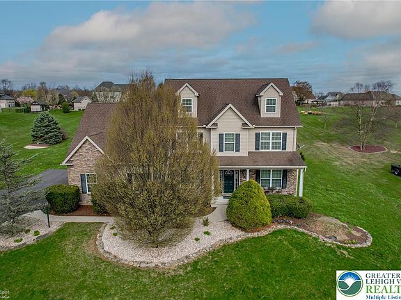 Welcome to 157 Fox Ridge Drive! This 4-5 BR, 2.5 BA, 3,720 sq ft Fox Ridge Farms home boasts hardwood floors throughout the 1st & 2nd level, a finished 3rd floor, 2.5 car oversized garage & a 1.05 acre lot in the Nazareth Area School District! Featuring a formal living room, spacious dining room with tray ceilings, kitchen with dual ovens & center island in addition to the family room complete with stone fireplace flanked by beautiful large windows to let the sun shine in! First floor laundry & powder rooms. Primary bedroom suite features a walk-in closet & bath with dual sinks, soaking tub & separate shower. Three additional generously sized bedrooms (2 w/walk-in closets) & a large full bath. Hall with sitting area & full staircase leads to the 3rd floor currently used as a home office/tv room but can serve as a 5th bedroom or guest room, game room, craft/hobby room, etc. Full basement with bilco doors. Expansive deck & stunning patio with fire pit to enjoy outdoor living overlooking the spacious backyard with plenty of room for a pool! Newer HVAC & driveway. There truly is no place like home! OPEN HOUSE: Sun 4/27 12pm-3pm