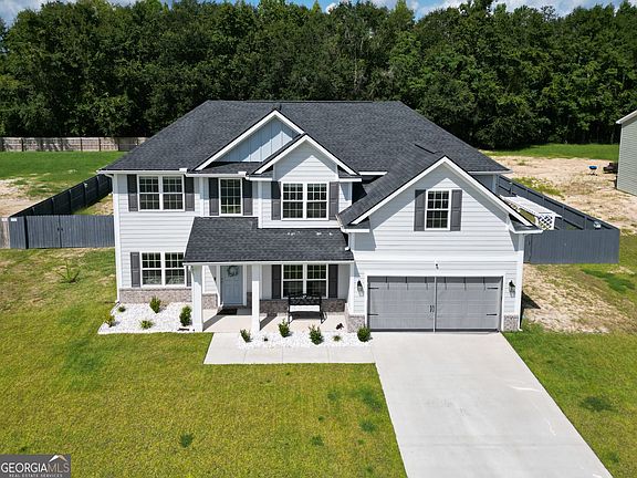 Welcome to 157 Halcyon Way NE in Ludowici's premier gated community, Palmer Place. This beautiful two-story Richland Covenant floor plan by RTS Homes offers 4 bedrooms, 2.5 bathrooms, and 2,724 sq ft of living space. Built in 2023, the home combines modern design with thoughtful details. The open layout features a spacious living area and a kitchen with granite countertops, all appliances included, a walk-in pantry, and plenty of storage. The main level also includes a mud room and a convenient powder room. Upstairs, the master suite is a true retreat with a generous sitting area, perfect for relaxing after a long day. Additional upgrades include upgraded blinds, a Vivint security system, and an all-in-one washer and dryer that stays with the home. Step outside to a beautifully landscaped yard complete with a sprinkler system, stained privacy fence, storage shed, gutters, and a cozy fire pit-ideal for entertaining family and friends. A sauna is also available as an option. Palmer Place is a gated community offering a playground for children and a dog park for your pets. This home truly has all the must-have features-schedule your private tour today before it's gone.