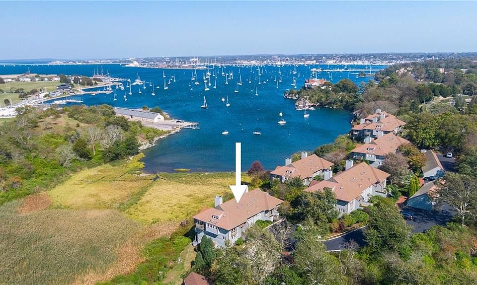 Stunningly & THOROUGHLY RENOVATED “Brenton's Cove” waterfront condo on Newport Harbor. With its sparkling water views of the harbor, the spacious great room has vaulted ceilings, new hardwoods, recessed lighting throughout, a gas fireplace & a wet bar with an attractive hammered-metal sink, drinks fridge & custom cabinetry. The great room’s many windows give it wonderful natural light & the sliders provide access to 1 of the 3 decks to make outdoor living seamless. With a desirable open floor plan, the dining area & kitchen are open to the great room. The kitchen features light maple custom cabinetry & new high-end Bosch appliances including a gas 6-burner range. The loft off the main living area has skylights & can easily be used as a den, office or third bedroom as it has a large closet with extensive built-in shelving. The spacious primary bedroom features two California walk-in closets, dressing room, and an easy step glass enclosed shower, dual sinks with custom vanity & deck with water views. The second bedroom features a California designed closet, tub and shower, custom sink & vanity with water view deck. Parking spot directly in front of unit + carport parking & external storage. Ideal location for Yacht Clubs, Sail Newport, Fort Adams and Ocean Drive. NOTE: Some Photos are virtually staged. NEW: HVAC, Water tank. This is a stunning, move-in ready very tastefully renovated waterfront condo overlooking Newport harbor to enjoy for the summer of 2023 & beyond!