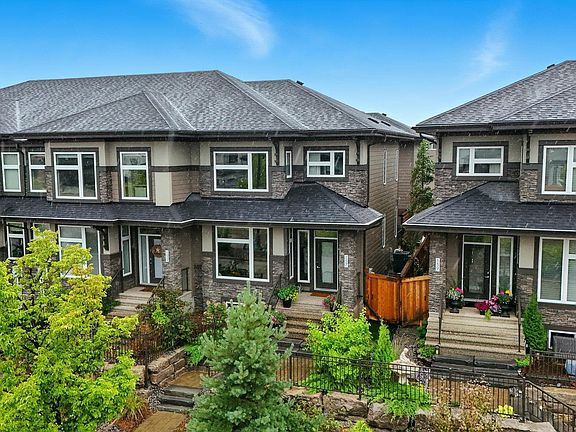 Experience luxury living in Jagare Ridge—with NO CONDO FEES! Surrounded by a championship golf course, lush trails, and peaceful ponds, this townhome blends elegance with convenience. The open main floor impresses with soaring 9' ceilings, large windows, and an electric fireplace. The chef’s kitchen features Jennair appliances, quartz counters, to-the-ceiling cabinets, built-in bar fridge, a stylish eat-up island, and designer lighting, overlooking an open-to-below dining area that adds dramatic flair. A mudroom with storage and 2 pc bath complete the level. Upstairs offers a bonus room, TWO primary suites each with 4 pc ensuites & walk-in closets, plus upper laundry. Enjoy A/C, smart windows, blinds & lighting, closet organizers & built in safe, and a private deck with patio & low-maintenance turf & security system. Double attached insulated garage included with electric car charger. Close to golf, shopping, dining, and top-rated schools—this home delivers upscale finishes and effortless living.
