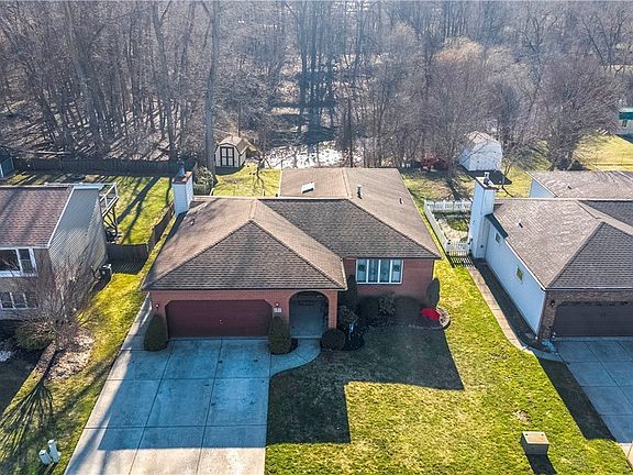 Welcome to 157 Hillpine Rd- a pristine ranch offering elegance, comfort, and a serene setting in Losson Green Estates. Built in 1989, this home boasts stately brick frontage and a distinguished covered front porch adorned with graceful brick archways. Set at the rear of a quiet neighborhood street and abutting Slate Bottom Creek, this property provides peaceful outdoor enjoyment while maintaining close proximity to shopping and major interstates. Step inside to a welcoming foyer with a spacious closet organizer leading to a bright sitting room illuminated by a picture window. The formal dining area seamlessly connects to a large eat-in kitchen featuring granite countertops, updated appliances, a tile backsplash, and a skylight, enhancing your connection to nature at the heart of the home. The adjacent family room, warmed by a gas insert fireplace (NRTC), offers exquisite views and direct access to a private rear deck overlooking the tranquil landscape. A private hallway leads to three well-sized bedrooms, all serviced by a beautifully renovated full bath with generous counter space, tasteful tile work, and a luxurious bath/shower. The finished lower level, boasting 8' ceilings, provides a versatile bonus space with Pergo flooring, a second full bath, ample storage, and a dedicated laundry area. Additional highlights include a 2-car attached garage, central air, Andersen windows, an architectural roof, and a water back-up sump pump—an investment built to last for years to come. Offers will be considered Wednesday, 3/26 by noon.