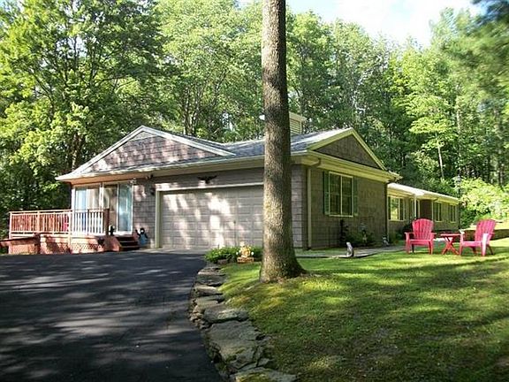Your Own Resort Ranch Home with endless Deck for Entertaining and Relaxing, Includes Hot Tub 2.5 Acres Nestled in the Woods on a the end of a Cul-de-sac New Custom Gourmet Kitchen with Skylight and recessed lighting, 4 Bedrooms Large Master Suite with Full Bath, Total of 2.5 Baths, Formal Dining Room, Family Room with Flag Stone Fireplace , All New Hardwood Floors , Bedrooms have New bamboo wood flooring,Sunroom is heated and can be enjoyed Year-round. Several sets of Sliding Door open to the Expansive Deck, Large Open Basement is Great for Exercise and Hobbies has a Walkout Door , Enjoy Central Air on Hot Summer Days ! This Home Has it ALL! Newly installed whole house generator.