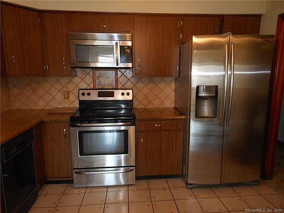 Homeowners or Investors Take Notice- Large two family brick home in well established neighborhood featuring 3 bed rooms on each floor. The first floor has an eat in kitchen, with tile floor,granite counter top, built in cabinets, dishwater, and stainless steel electric range, microwave and refrigerator. Formal dining room with title floor and slider leading to exterior deck. A Large living room with a full length stone fireplace,walnut wood paneling, and wall to wall carpeting.Hall bathroom with twin basin sinks, tub, tile floor and separate shower stall. Three bedrooms with closets and wall to wall carpeting. The second floor apartment also has an eat in kitchen, formal dining room with title floors, large living room, full hall bath room with tub & shower, 3 bedrooms with closets and wall to wall carpeting. Both units have laundry provisions,separate oil tanks,electricity meters and the baseboard hot water heat has separate zones. Two car under garage plus an additional two car detached garage with upper level that could be used and additional living space or apartment with approval from the town officials. This is an estate sale and the property is being sold in "As Is Condition" An inspection can be conducted for informational purpose. This property has great potential.