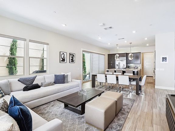 Welcome to your dream home in the highly sought-after Parasol Park community of Irvine! This stunning, modern condo offers 2,814 square feet of sophisticated living space across three beautifully designed levels. With 4 spacious bedrooms and 3 elegant baths, this residence combines comfort, style, and functionality. Step inside to discover a sleek, contemporary kitchen equipped with top-of-the-line appliances, including a 6-burner range with a hood, double oven, dishwasher, and built-in double door refrigerator. The generous island features seating and complements the home’s abundance of storage options. The open-concept design flows seamlessly into four separate outdoor entertaining areas, perfect for enjoying California’s beautiful weather. The main floor hosts a guest bedroom with a full bath, ideal for visiting friends or family, or as a convenient in-law suite. The primary suite is a serene retreat, boasting a private outdoor patio, dual vanities, a soaking tub, a walk-in shower, and a spacious walk-in closet. Upgraded finishes include elegant backsplash and flooring, enhancing the home’s modern aesthetic. The home features advanced amenities such as a Puronics water filtration system, Hunter Douglas automatic shades, and custom shelving in all bedroom closets. Enjoy energy efficiency with two slays of five panels each, totaling 10 fully owned solar panels and a garage equipped with two Tesla Power walls. The attached two-car garage is enhanced with epoxy flooring and custom cabinets.