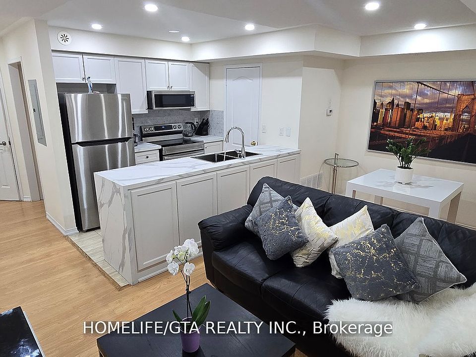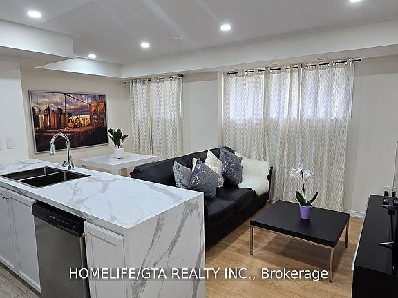 Beautifully Maintained One Bedroom Stacked Condo Town House In Sought After Area. Perfect Starter Or An Investment Property. Features Includes A Modern Kitchen With Stainless Steel Appliances, Laminate Floors Throughout, Tiles In The Kitchen And Bathroom, Steps To TTC, Shops, Park & School. And Minutes To Hwy. well Maintained Complex.