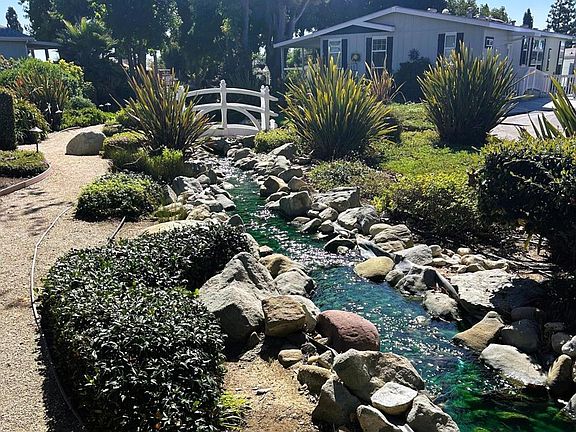 Popular Lemonwood Senior Park. Built in 2005 with approximately 1541 square feet. 3-bedroom, 2 full baths. Finally upgraded and remodeled. Air-Conditioning. Beautiful expensive Trek Deck on two sides. Peaceful location. Massive stone fireplace with gas log. Large Tuff Shed Included. Recently painted exterior. Included washer and dryer and refrigerator and small TV in kitchen. One Bedroom converted to office area. Hard to describe how nice this mobile home is. Cul-de-sac location by the babbling brook. Must see to appreciate! Residents enjoy access to fantastic community amenities, such as pool, clubhouse, BBQ area, putting green, all in a beautifully maintained park setting.