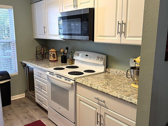 Move-in ready townhouse just 5 minutes from the West Gate! Offering 1,028 sq. ft. of comfortable living space, this 2-bedroom, 1.5-bath home has been updated throughout with new LVP flooring, carpet in bedrooms, fresh paint, blinds for the sliding door, new light fixtures and extra insulation in the attic. The kitchen and bath feature new sinks and fixtures, countertops and all new appliances (less than 5 years old) are included. Enjoy your morning coffee on the private back deck with peaceful, treehouse-like views of the woods. Tucked away in a quiet cul-de-sac, this home combines comfort, convenience, and charm.