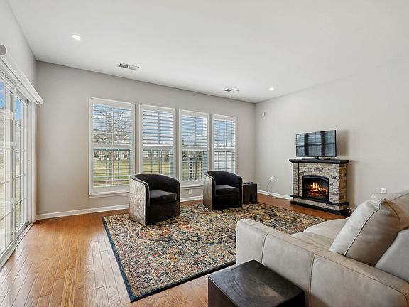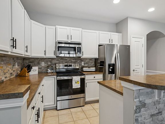 Elegant plantation shutters allow for natural light and privacy. The living room includes recessed ceiling lighting and an electric-heated decorative fireplace, perfect for cozy evenings. The kitchen shines with white cabinetry, stainless steel appliances and under-cabinet LED lighting. The Lakeshore plan includes a built-in pantry. Both the washer and dryer are also included for added convenience. Water heater is less than 1 yr old.