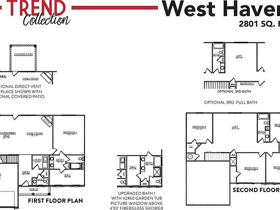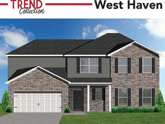 (Trim Stage-6/11//25) The West Haven, from the Trend Collection, is a spacious five-bedroom home with a first-floor primary suite. The first floor living areas are all open to one another, and the kitchen has an island layout with pantry, breakfast area and stainless steel appliances (dishwasher, OTR micro hood, range, and refrigerator. The family room has a direct vent, inside chase gas fireplace, including a wood mantle. The primary bedroom suite features a huge closet, a separate 4'x3' shower, garden tub with picture window over tub, double bowl vanity. A full-size utility room and two coat closets are located on the first floor. The second floor has four additional bedrooms, a loft, and a full bath. An additional full bath is on the second floor with a tub/shower combination and a linen closet. Exterior plan details include a covered porch, covered patio (12x12) and hip roof style. 70UC