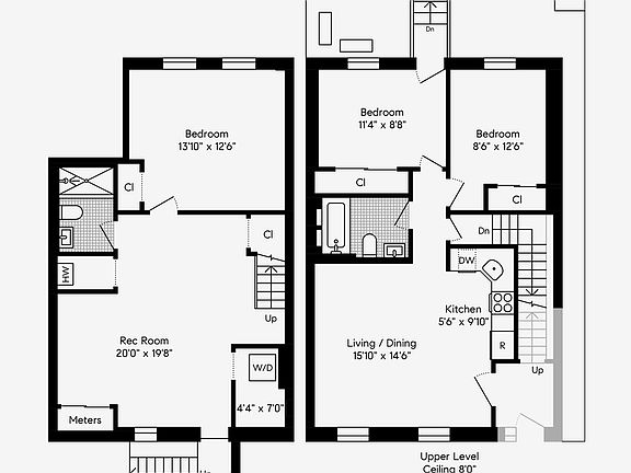 Downstairs, the flexible lower level adds even more space and utility. It features a separate room that can serve as a third bedroom, home office, or den, complete with a Fujitsu split A/C system and a second full bathroom with a stand-in shower. An in-unit LG washer and dryer provide everyday convenience.