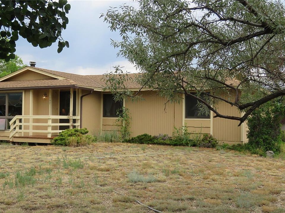 Super location, larger lot, mountain views, close to town and an awesome deck describes just a few of the amenities of this 1438 square foot stick built home and garage. Space for entertaining in the living room with an efficient wood burning stove, large windows for natural light. Galley kitchen offers flexibility located just off the back deck and next to the dining room. A lovely primary suite with spacious bath including double sink vanity, walk-in shower and linen closet, a office nook and extended closet space. Two additional bedrooms and very nice full bath, designated dining space with built-in cabinet for storage, washer and dryer included, wood stove to augment the electric heat plus ceiling fans in all the bedrooms and living room. Very nice Anderson wood cased windows, recently painted exterior, newer wood deck with sunshades, large detached garage with a stove and lots of storage. Well cared for and located on the west side of town to capture the mountain views. Trails nearby for easy access to downtown and close to hot springs, mountain trail heads and back country for added benefits of this super value in the town limits. Some furnishings maybe included.