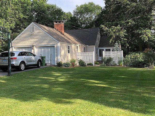 3/4 bedroom 2 bath expanded cape with 2 car garage with large level lot in the sought after Buttonball neighborhood. Wood floors throughout. Open concept kitchen/dining room/living room. French doors lead from kitchen to beautiful 3 season porch with large thermopane windows and a large slider that leads to a brick patio. Architectural siding and garage doors. Newer high efficiency furnace (2015) and indirect fired water heater (2019). 200 AMP electric service and Central air. Baseboard gas heat with 3 zones, including 1 in the 600 SF finished and carpeted basement. Raised playscape area with adjacent fire pit and horseshoe pit. Driveway expanded and repaved in 2015. Power washed 2020. BY APPOINTMENT ONLY. NO AGENTS OR BROKERS PLEASE. CALL OR TEXT 860.424.7749. Only second owners. Original owner built home in 1962. Purchased by current owners in 1996. Water test 2019 (report available) Radon test 2020 (report available) 2 full baths (one with granite countertop with double sinks and tub with shower and one with single sink and large stall shower). 4th Bedroom/Den has built-in cabinets. Kitchen has Corian countertop with under cabinet lighting. Attic fan, bluestone chimney cap, Bathroom exhaust fans, new lights throughout house (many are LED), hardwired timer for outside lights, motion sensor light front and rear, storm door on front door, thermopane/triple track windows, invisible fence for dogs (collar included), ridge vents, garage door openers (springs replaced 2018). Included: All kitchen appliances, washer, dryer, basement refrigerator, generator, chandelier, metal shelving, porch rug, fireplace grate and tools, mirror over fireplace, window coverings, basketball hoop. Available to purchase: Grand Kawai piano, treadmill, LifeFitness CM3 Gym System