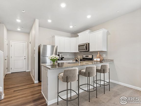 Welcome Home! Completed new construction townhomes that are move in ready. This gorgeous townhome community is conveniently located and features 3 bedrooms, 2.5 baths, and 2 car attached garage with an open floor plan. Our beautiful Loveland Model features a thoughtful layout built for easy living including a large primary bedroom with a private bath, and walk in closet, upstairs laundry room, spacious kitchen, A/C, covered porch and balcony. Discover the LGI Homes' CompleteHome package, with incredible upgrades at no additional cost including a gas range/oven, refrigerator, microwave and dishwasher, gorgeous granite countertops, designer wood cabinets, wood blinds on all windows, and a Wi-Fi-enabled garage door opener are just a few of the fabulous upgrades that make this townhouse the place you want to call home. Located just minutes from I-25 and the new Ledge Rock shopping center, this home provides easy access to a variety of shopping, dining, and entertainment options.