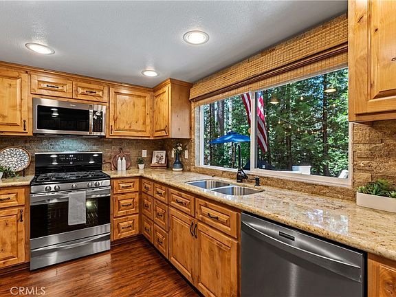 Time to make memories in this Lake Adjacent Home. Rarely does a house like this come on the market. Enjoy the first-tier Lake Arrowhead lifestyle in the summer with a 1-minute walk to ALA Lake Access #33 leading to the lake. Upon entering the house, the impeccably designed kitchen leads to the charming family and dining rooms featuring natural wood-beamed ceilings and a large wood-burning fireplace. There is also a bedroom, bathroom, and laundry room on the main level. The second level features two additional bedrooms and an office, that can be used as a 4th bedroom. A large walkout basement on the lower level has a pool table and a separate storage area. There is plenty of room for guests in the guest house above the 2-car garage. The guest house features two futons, a sleeping loft, and a wet bar. Parking is a breeze with space for 5 cars plus a 2-car garage. Enjoy the level entry access with county-plowed roads during the magical snowy winters. Located in a beautiful neighborhood, this immaculate house has been updated to perfection and is ready for you to start making memories today.