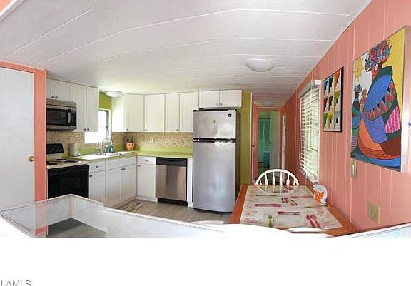 Completely renovated, fully furnished & delightfully decorated 1 BR, 1 BA manufactured home located in a great 55+ community w/Gulf-access boat ramp, you own the land and pets allowed! Nice open floor plan w/lovely ceramic tile flooring designed to look like bleached wood. Bright 17 ft living room w/entry to the screened lanai. Spacious 13 ft eat-in kitchen w/crisp white cabinetry, stone back splash & pantry. 14 ft master bedroom w/3 closets. Beautifully updated bathroom w/modern glass vanity & tiled walk-in shower. Shed w/washer & dryer. Extra long carport perfect for your boat! New washer & dryer in 2014, new dishwasher in 2015, new microwave in 2015 & new refrigerator in 2014.
