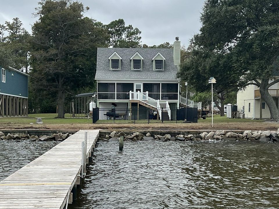 Fishermen, Boaters: get WATERFRONT at a fantastic price. Your own dock with 7,000# boat lift right outside your recently renovated home. Enjoy the water view from your screened porch, accessible from the living room or your main floor master bedroom. Master bath redone with a beautiful walk-in shower. Kitchen has been updated with quality cabinetry, and the appliances are included. New HVAC system. Fenced back yard area for the safety of pets and children. Outdoor shower to clean off after the boat or the community beach.