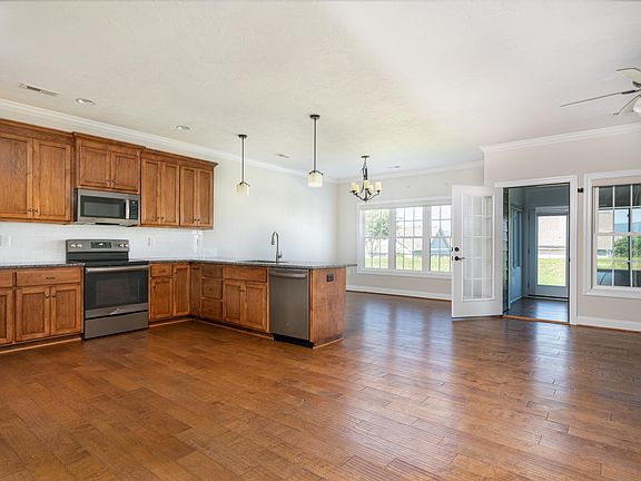 Two year old patio home in popular Sanderson Ridge. 3 beds, 2 baths, sunroom, storage over garage. Hardwood floors, custom blinds, granite tops in kitchen, bathroom and laundry. Laundry has cabinets and sink. Gas fireplace, patio.